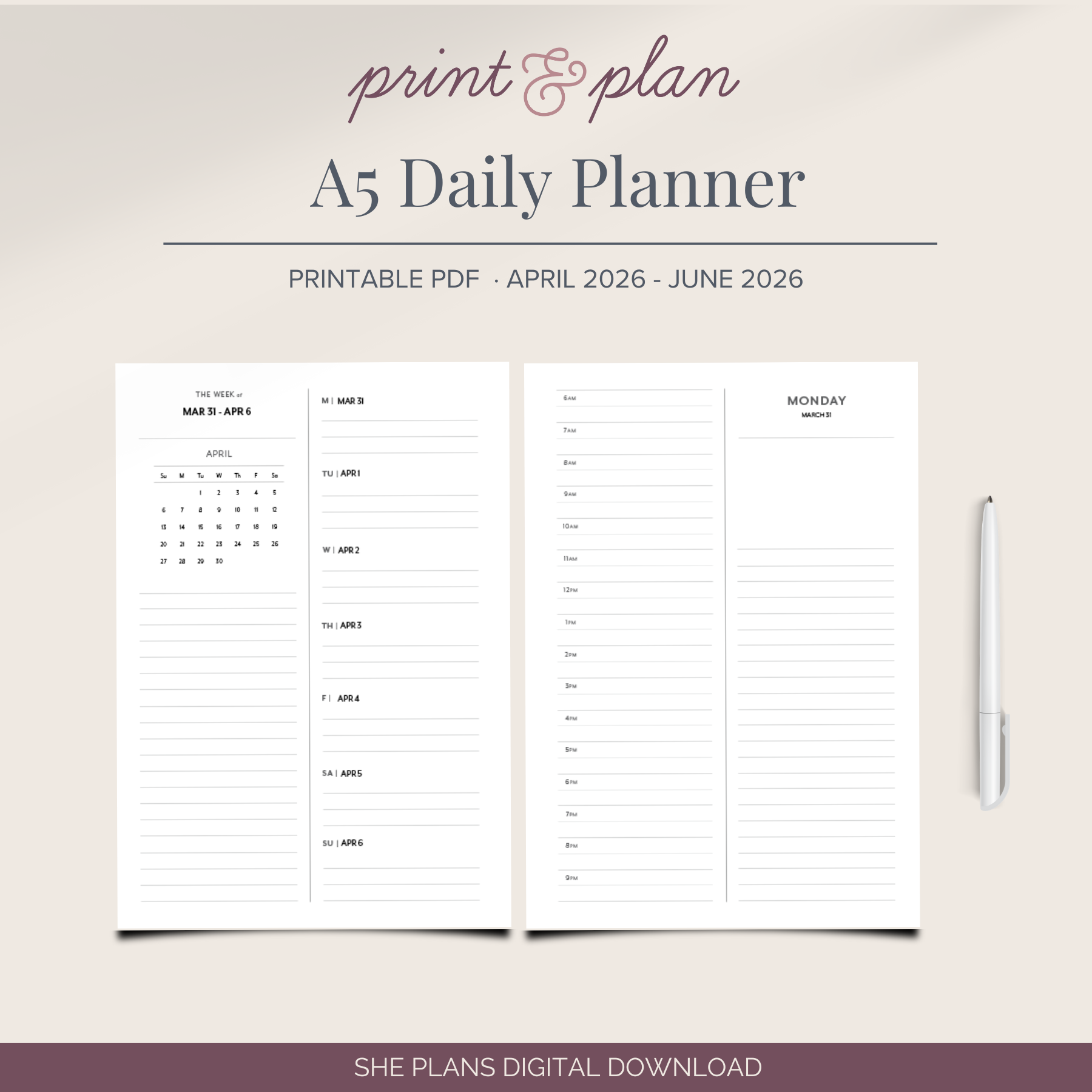 2026 A5 Daily Planner Printable Q2