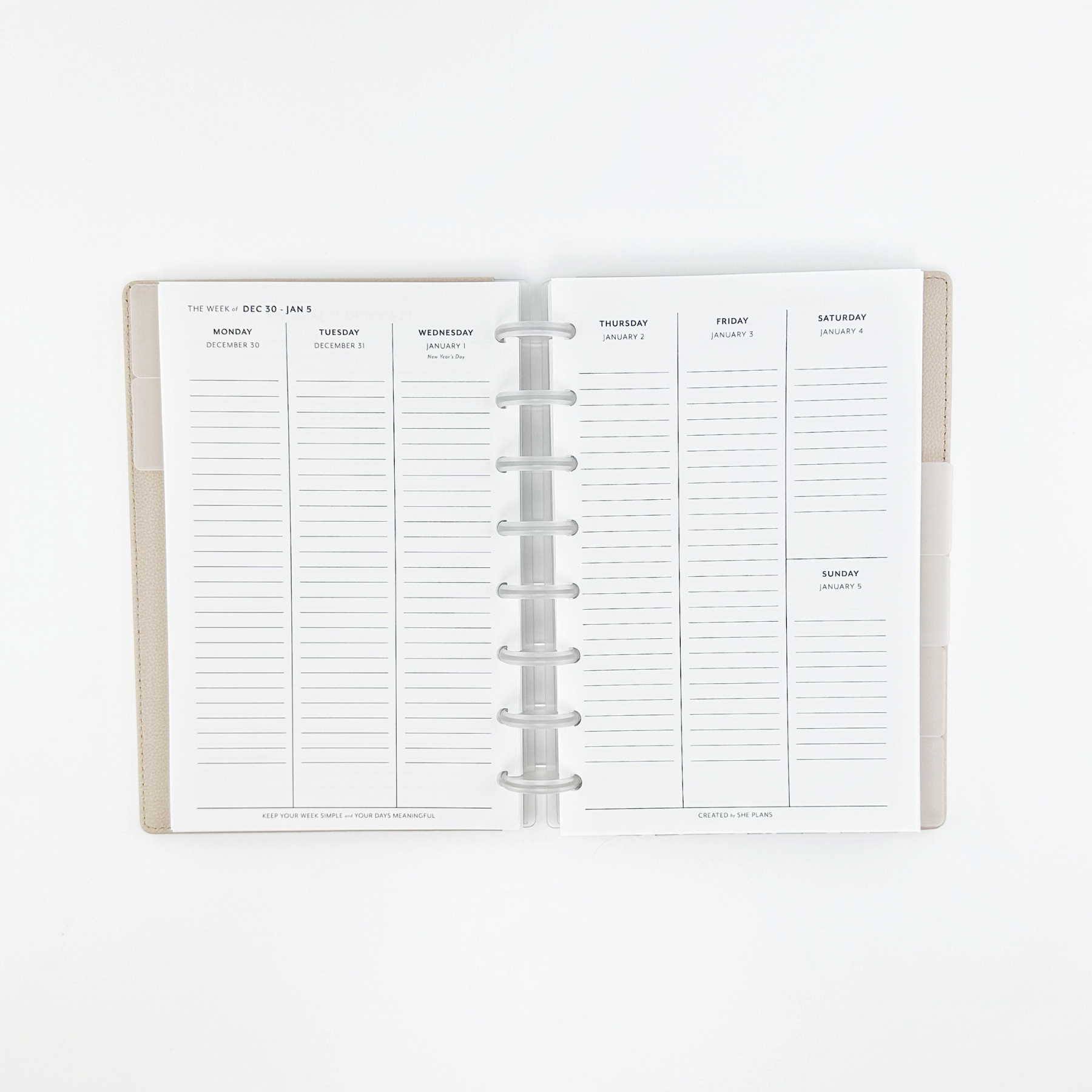Dated Weekly Vertical Discbound Planner Insert (Full Year 2026)