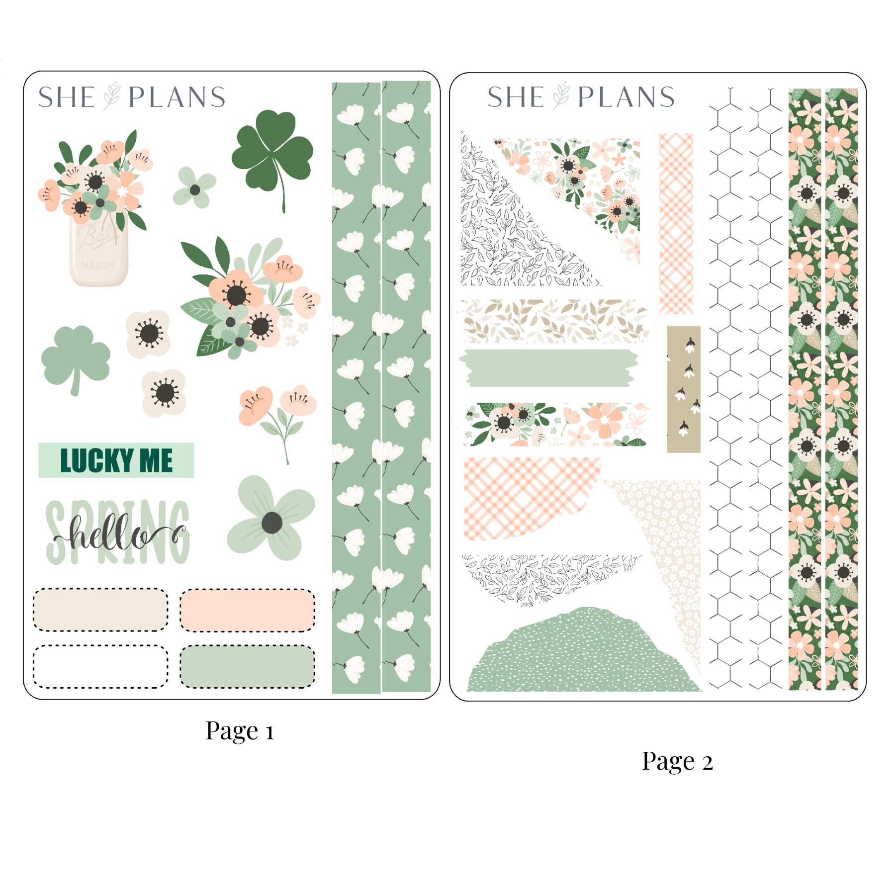 This kit includes two pages of white matte sticker sheets that come with washi strips, deco, and torn corners. It's the perfect way to add a unique touch to your undated sewn planners or any planner. Use it as a stand-alone kit to add a pop of color or combine it with any coordinating stickers or washi to personalize your planner.