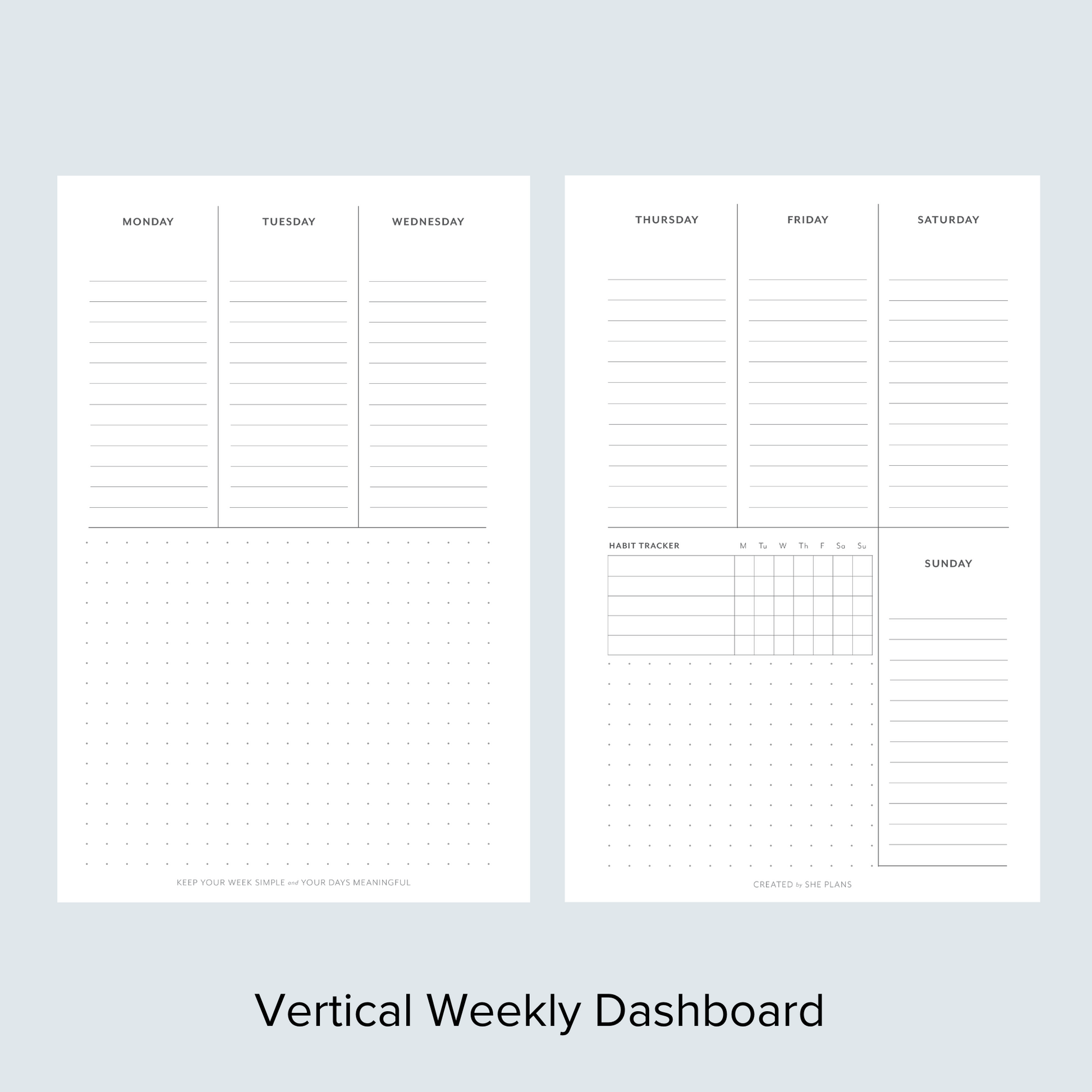 Introducing the Vertical Weekly Dashboard, the perfect addition to your planner. This versatile insert offers a week at a glance, a habit tracker, and tons of dot grid space to utilize however you see fit. Keeping track of your busy schedule has never been easier.