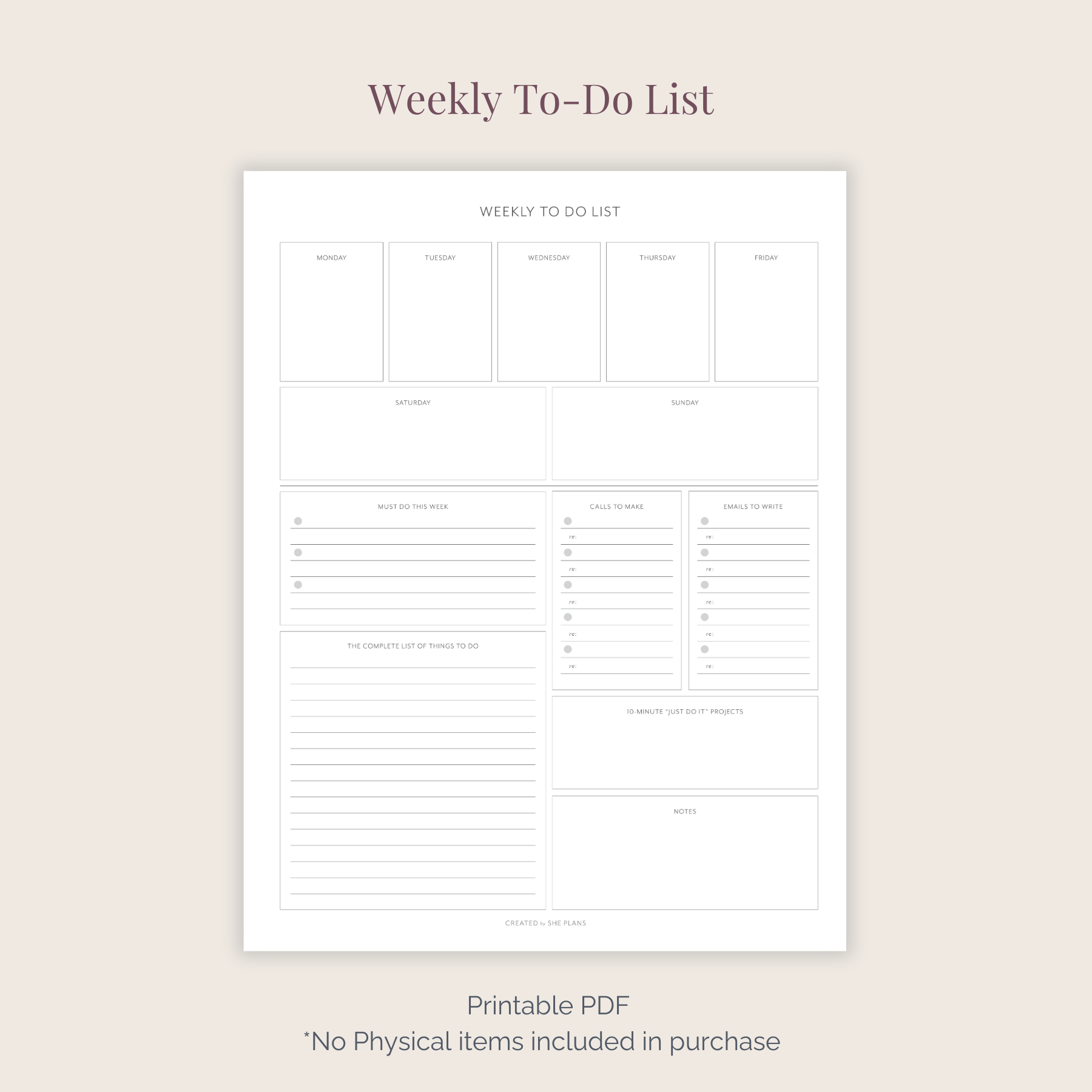 Get organized with this weekly to-do list printable. This pdf will help you track your calls, emails, and tasks with ease. Let this printable help you stay on track and get through your week with fewer stressors.
