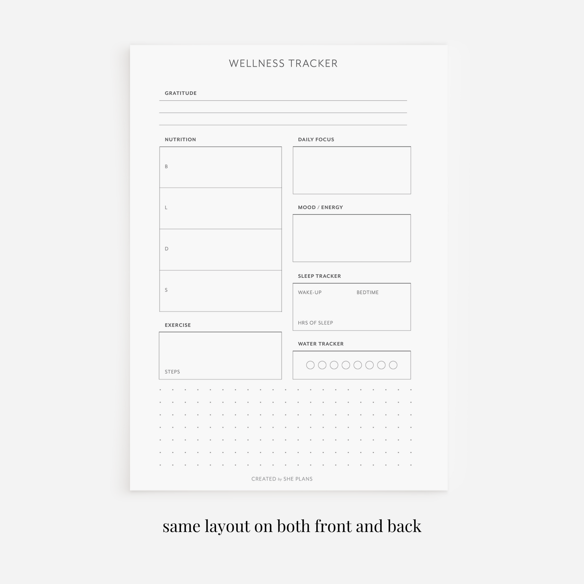 Are you trying to eat healthier and stay on top of your nutrition? How about trying to get in shape or maintain a healthy lifestyle? Sleep? Hydration? The Daily Wellness Tracker has it all, making it easy to track all of the metrics you need to see a more healthy you!
